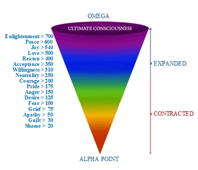 He states that anything below the level of 200 (i.e. Pride, Anger, Desire, Fear, Grief, Apathy, Guilt and Shame) are all negative, false and weak forces.